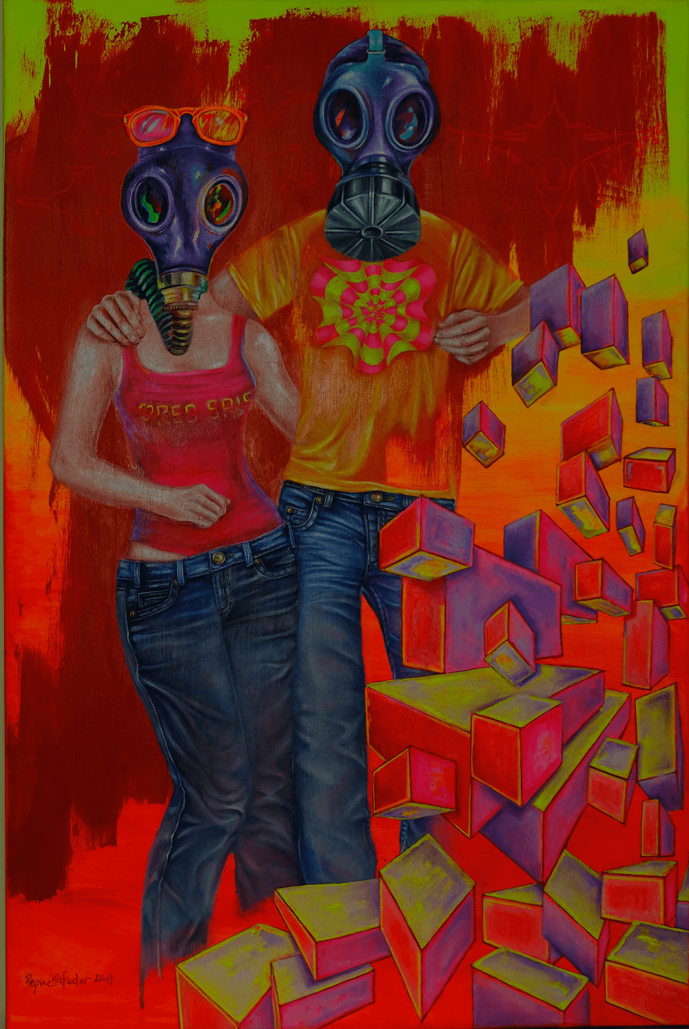 Chromo stereoscopic techniques allow the change from flat paintings to spatially paintings in differing depth perception when illuminated by UV-Light.